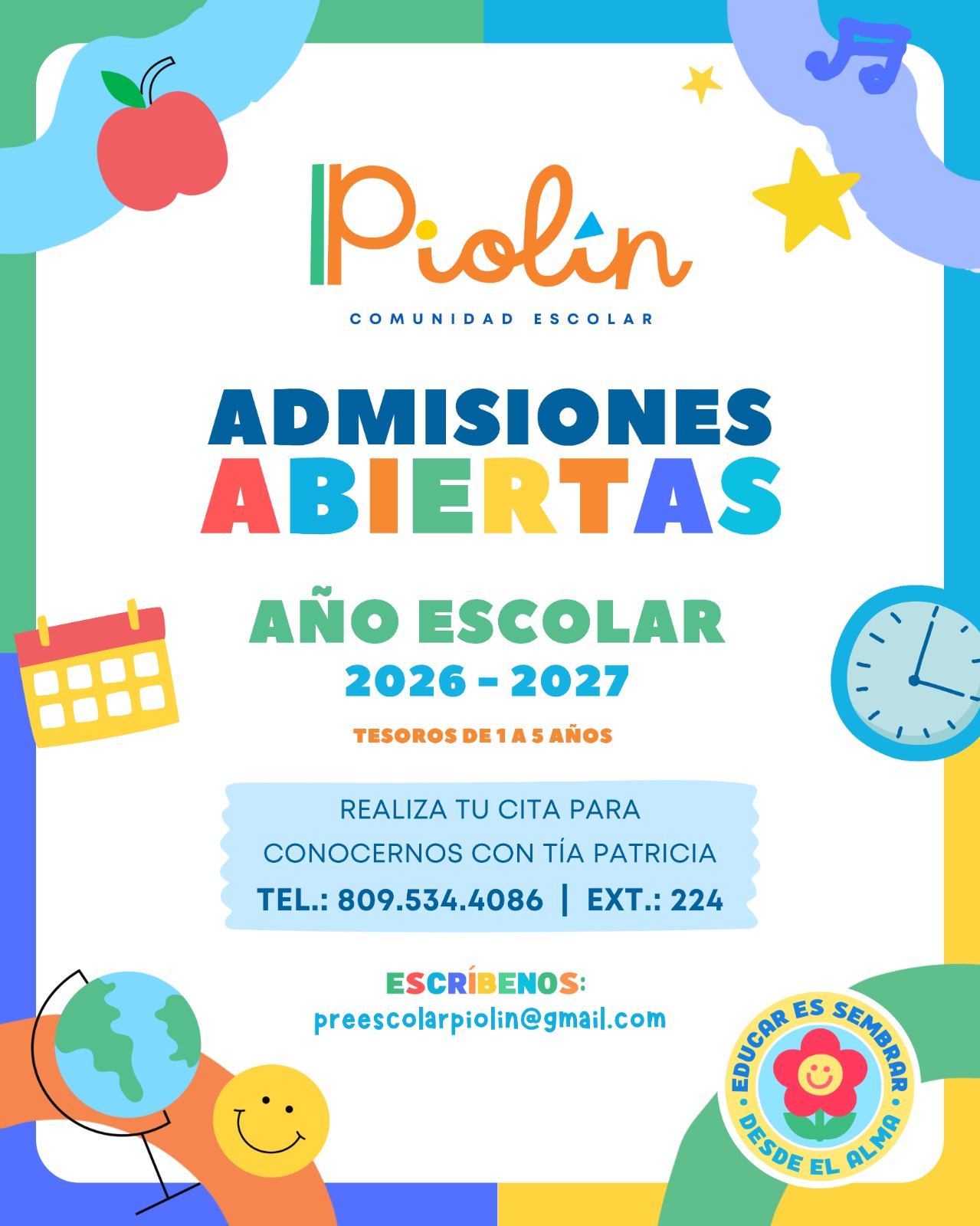 El proceso de admisión en Piolín Comunidad Escolar consiste en una reunión inicial donde se conoce a la nueva familia y se discuten aspectos importantes del desarrollo del niño. Entre los temas que discutimos con las nuevas familias están: horarios de comida, horarios de sueño, cuidado del niño, nacimiento y proceso de parto, alergias del niño, actividades que la familia comparte, entre otros temas que nos permiten conocer más a fondo al niño y la realidad del hogar en que vive.